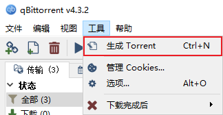 首先,「工具」-「生成 Torrent (Ctrl + N)」。
